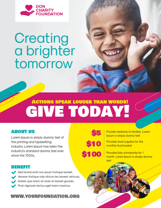 If one seeks donations, using flyers is the one of the most effective promotional materials you can use. Browse through thousands of templates and download website and social media graphics for FREE or get prints in bulk. With Spark flyers, you can better promote your cause with easily shareable content that is sure to inspire.