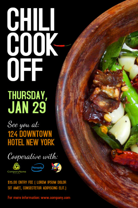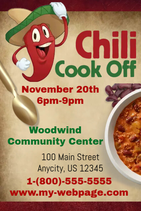 Use this customizable chili cook off event flyer template and find more professional designs from canva.