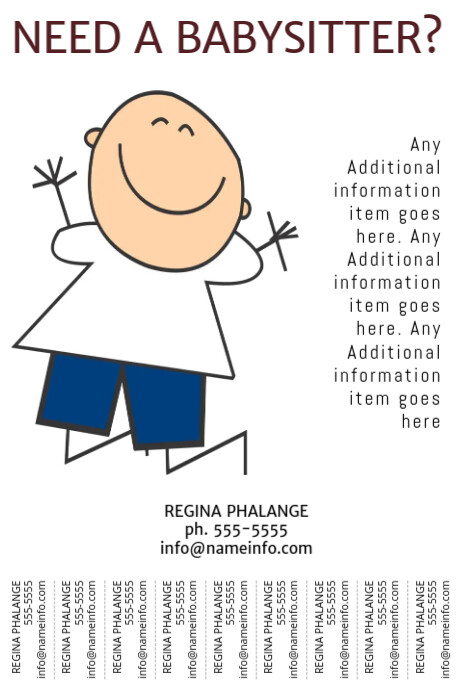 Babysitting Flyer Free Template. Whether you're looking for something cute and sassy or professional and classy, we've got a template for it. The rest is up to you. A consideration template is a couple of snaps away in the concern that you utilize a template Microsoft Word design even though going after an right to use job. Most PCs come preinstalled bearing in mind a variant of Word, regardless of whether it's a preliminary adaptation, you'll retrieve several release template.