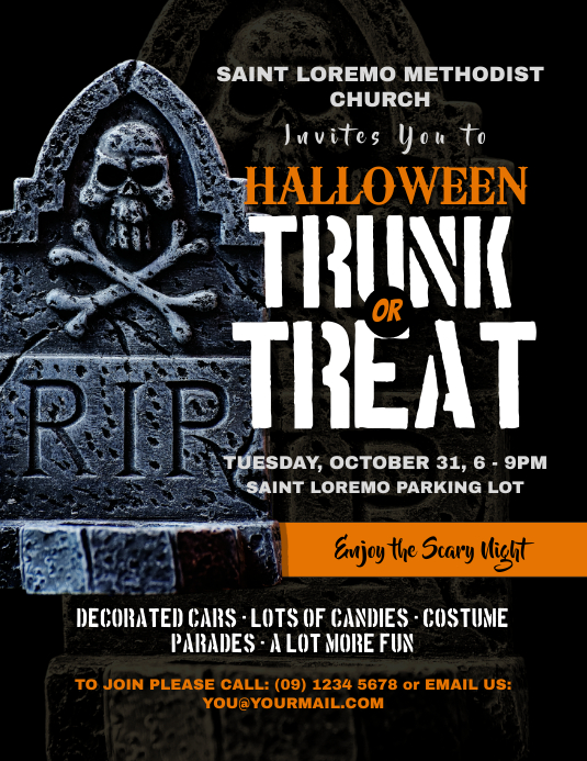 Each of the forms and flyers are editable in Word or Pages. For Halloween flyers that's all treat and no tricks, browse our collection of professionally designed templates - free to customize on Canva.. Trunk or Treat, Halloween Event Flyer, Custom, Printable, Church event, PTO Flyer, PTA Flyer, Template, Edit yourself, Templett If you are planning a Trunk or Treat event at,your school or another organization we can make it super easy for you.
