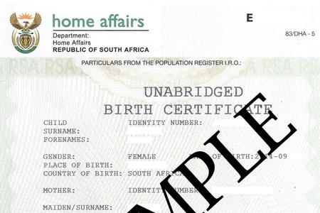 Indicate with an X which certificate is required. Unabridged birth certificates are issued upon request to persons who are: South African citizens, whether in the Republic or outside the Republic, including persons who are not South African citizens but who sojourn permanently or temporarily in the Republic, for whatever purpose. If you live, work, and plan to stay in South Africa, this certificate should suffice.